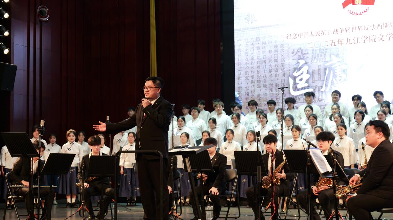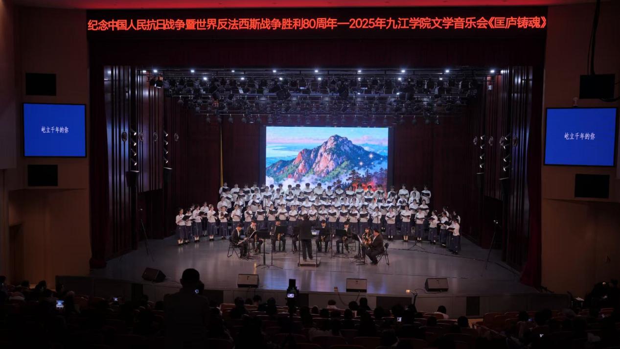 音乐会在合唱《虎贲万岁》中拉开序幕,随后《台湾光复纪念歌》《还我河山》等经典曲目轮番上演,通过合唱、独唱、二重唱等多种形式,再现中华民族英勇抗战的历史画卷。音乐会还特别呈现了由2025年“谷雨诗会”优秀诗篇改编的《匡庐铸魂》组曲,包含《聆听,庐山的回响》《沁园春·咏庐山保卫战》等五个篇章,将庐山地域文化与抗战精神相结合,展现青年学子的创作活力。演出在合唱《恭喜恭喜》中落幕,全场持续约90分钟。