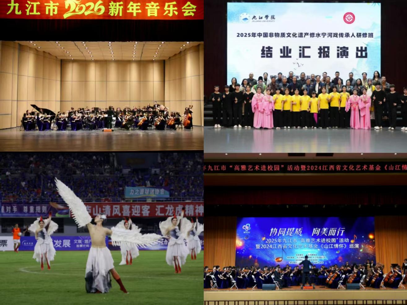 艺术学院始终将社会服务作为办学的重要使命,依托学科优势主动对接社会需求,用专业能力为社会发展赋能。学院组建的九江交响乐团、九江青年歌舞团,常年开展“高雅艺术进社区”“文化惠民演出”等活动,每年惠及群众逾万人次;作为江西省非物质文化遗产研究基地,学院师生深耕青阳腔、陶瓷艺术等本土文化传承,参与的“中国非物质文化遗产传承人群研培计划”,为传统技艺的活化创新注入了青春力量。