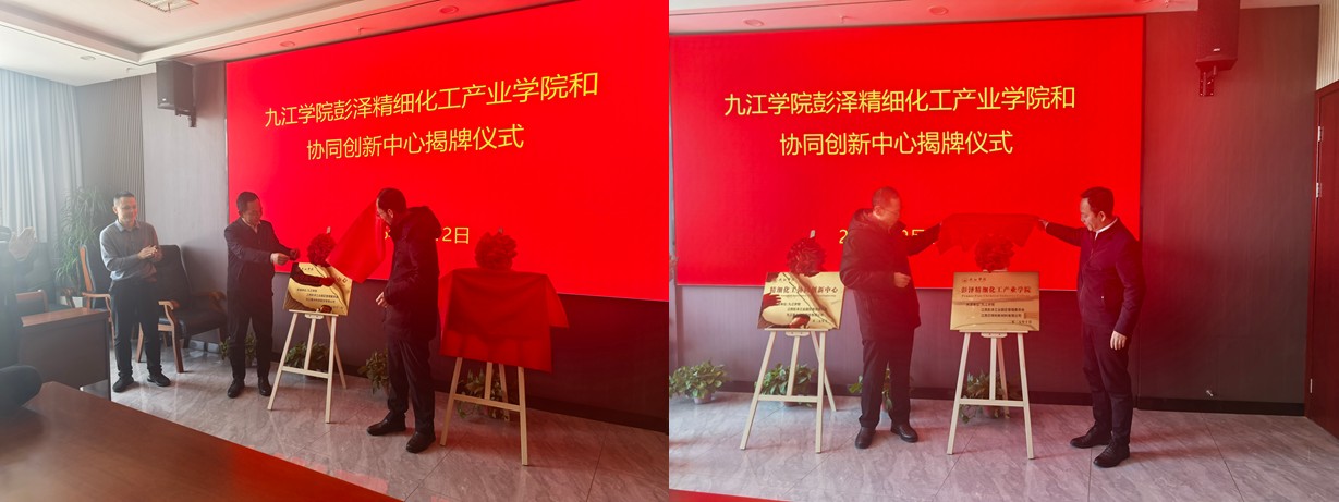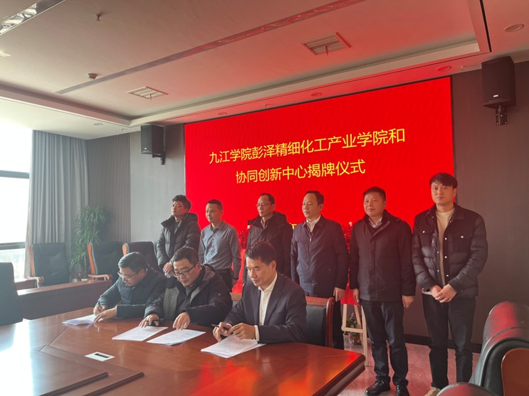 化学化工学院、江西彭泽工业园区管理管委会携手九江善水科技股份有限公司、江西贝特利新材料有限公司联合组建的彭泽精细化工产业学院与协同创新中心揭牌仪式在彭泽县工业园区管委会举行。