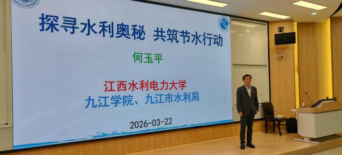 作为九江首个节水型高校,始终重视水资源节约与水文化教育。此次讲座紧扣2026年世界水日“Water and Gender”和中国水周“国家水网 世纪画卷”主题,将节水宣传与科普教育深度融合,让节水理念真正入脑入心,推动形成人人节水、护水、爱水的良好校园氛围。