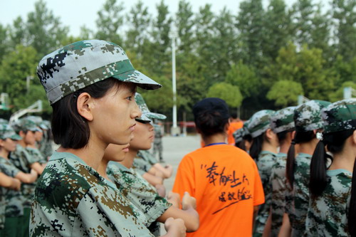 坚持到底精神佳。在9天军训中,多数烈日当空,秋阳高照,同学们还是认真的投入到各项训练中,为了连队集体的荣誉坚持着,一遍一遍重复着军训动作。在训练中他们流下酸楚的汗水,也流下苦咸的泪水,却收获了成长、友谊、坚强。