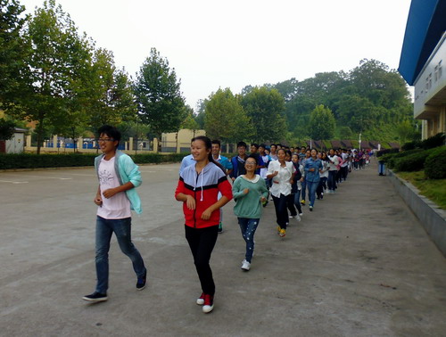 早晨6:30,同学们在北区田径场集合完毕,有序绕着田径场慢跑,邹书记也加入到跑步的队伍中。整齐的队伍,轻盈的步伐,矫健的身姿,无不展示着清晨的朝气,青春的激情,随着步伐的加快,同学们不免有一丝累意,但是依然坚持跑完了全程。