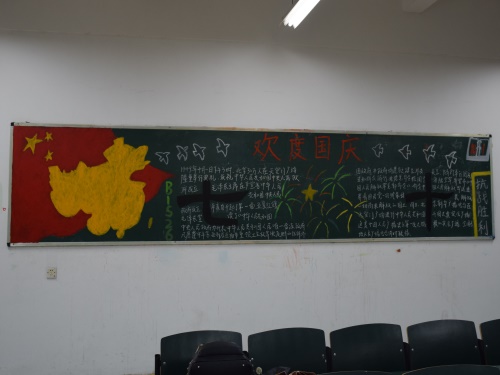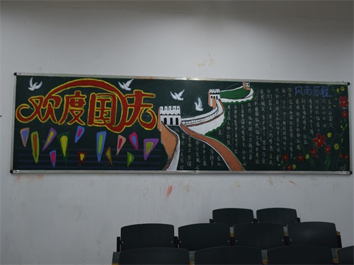 为迎接祖国生日的到来,9月30日,会计学院大一年级各班级在本班教室黑板绘制以“欢度国庆”为主题的黑板报。会计学院团委宣传部对本次黑板报进行评比。