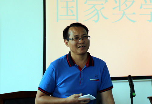 竞“晒”开始前,沈杨副书记对国家奖学金的评定条件、参评的5名选手的选拔经过,评委的组成及选手竞“晒”的顺序和要求作了介绍和说明。