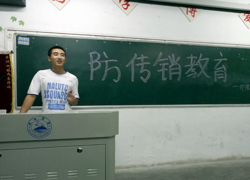 会上,各班班长首先向同学们介绍了什么是传销、传销的本质、目的和手段。其次,各班班长向大家深刻解读了最近的传销案例“1040阳光工程行业”,并希望同学们要提高防范意识,警惕误入传销组织,让同学们对传销有了进一步的了解和认识。最后,有些同学讲解了自己身边的传销案例,用事实说话,让同学们深刻认识到传销的危害性,并呼吁大家树立正确的人生观,脚踏实地做事,努力学习好专业知识。