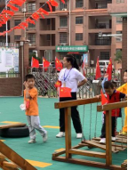 应国家规定,幼儿户外游戏活动时间不得少于2小时。每天幼儿在户外游戏活动时,实习老师们都会在一旁看顾,保证幼儿安全,有时也主动参与到他们的游戏世界中,同时帮助主班老师们拍摄照片。