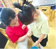 开学之初,中大班幼儿经过两月假期重新回到幼儿园,小班幼儿初来乍到,所以此时工作的重心是放在安抚幼儿情绪,帮助他们尽快适应幼儿园的环境上。作为新手的实习老师们一开始也有些慌不择路,在抚慰幼儿、和幼儿的相处上也是屡屡碰壁,但经过几天的互相磨合,小老师们逐渐找到了和幼儿正确的相处方式,师生关系也慢慢变得融洽,当幼儿不再哭闹,而是满脸笑意地奔向小老师们的怀中,小老师们的第一课才是真正告一段落了。