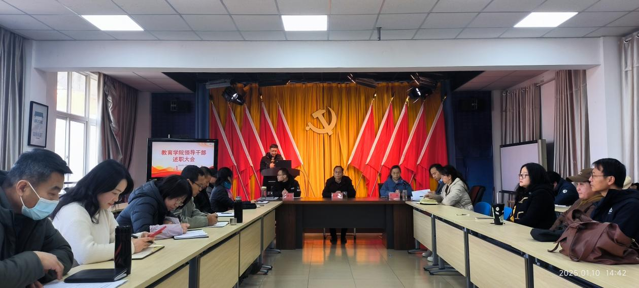 1月10日下午,教育学院2024年度领导班子和处级干部述职测评会在学院707会议室召开。校党委委员、副校长王殿元到会指导,组织部副部长吴燕主持会议,组织部干部科副科长杨建宝,教育学院领导班子及全体教职工参加会议。