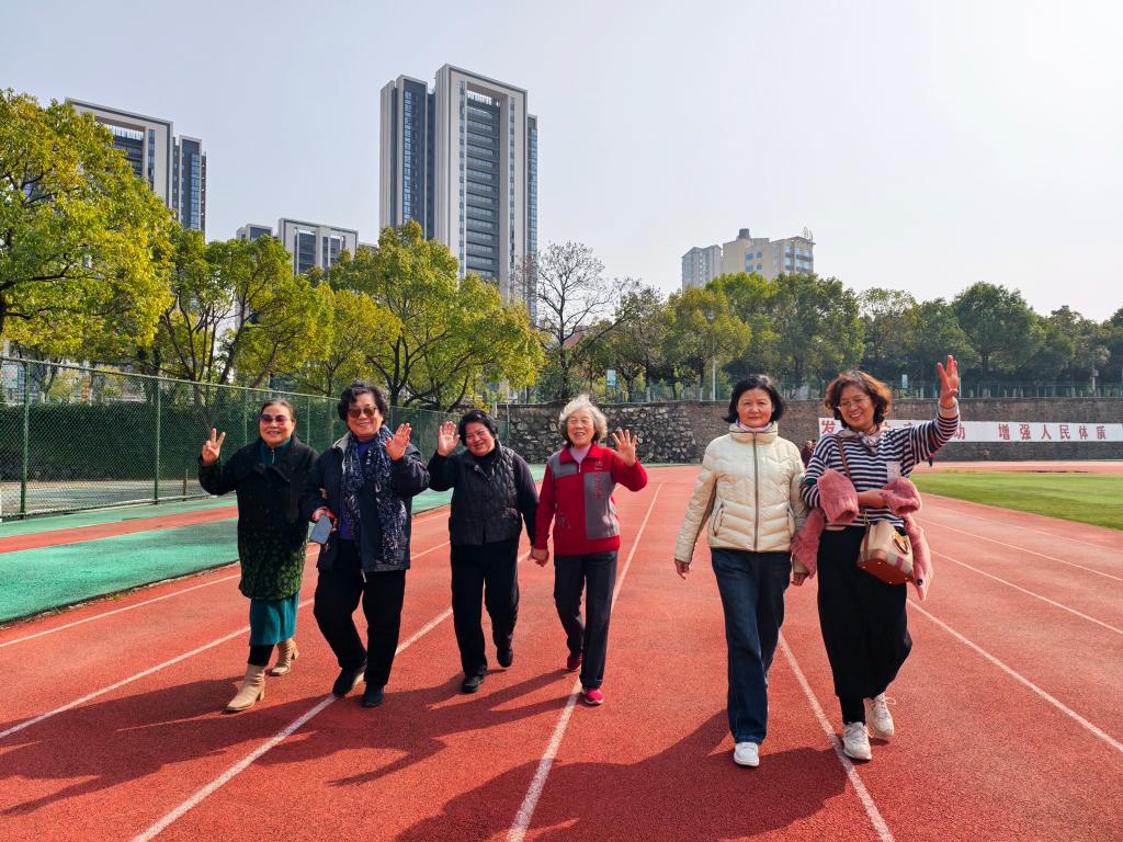 沿着熟悉的运动场,老同志们结伴而行。她们沐浴着春日暖阳,相互交流着生活中的点滴趣事,分享退休后的生活感悟。有的回忆起曾经在工作岗位上奋斗的岁月,感慨万千;有的则畅谈着如今的幸福生活,对未来充满了憧憬。遇到年事已高,行动稍显不便的老同志,便伸出援手,互相搀扶,展现出深厚的情谊。