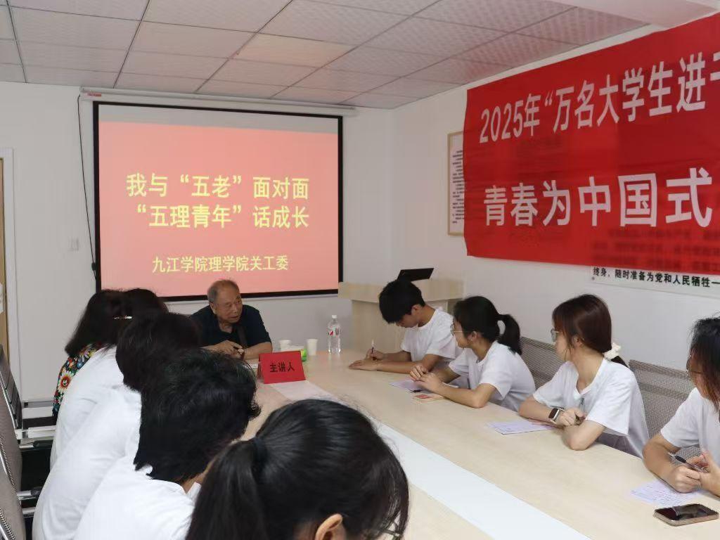 为充分发挥“五老”育人优势,引导青年学生坚定理想信念,厚植家国情怀,2025年6月25日上午,理学院关工委、院思政科组织优秀学生代表,联合江西省九江市浔阳区湓浦街道湓浦社区文明实践站,共同邀请到了抗美援朝老战士夏子贤爷爷开展以“传承红色基因,弘扬抗美援朝精神”为主题的红色文化宣讲活动。 |