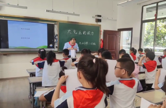 2025年6月16日下午,九江小学二(6)班教室化作奇幻实验室,九江市物理学会副理事长、