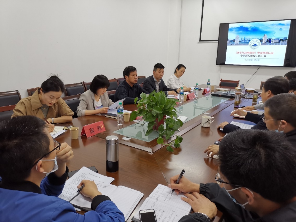 4月21日下午,副校长陈春生带队到我院调研数学与应用数学专业师范认证工作,教务处、教学质量监控与评估中心领导参与调研。