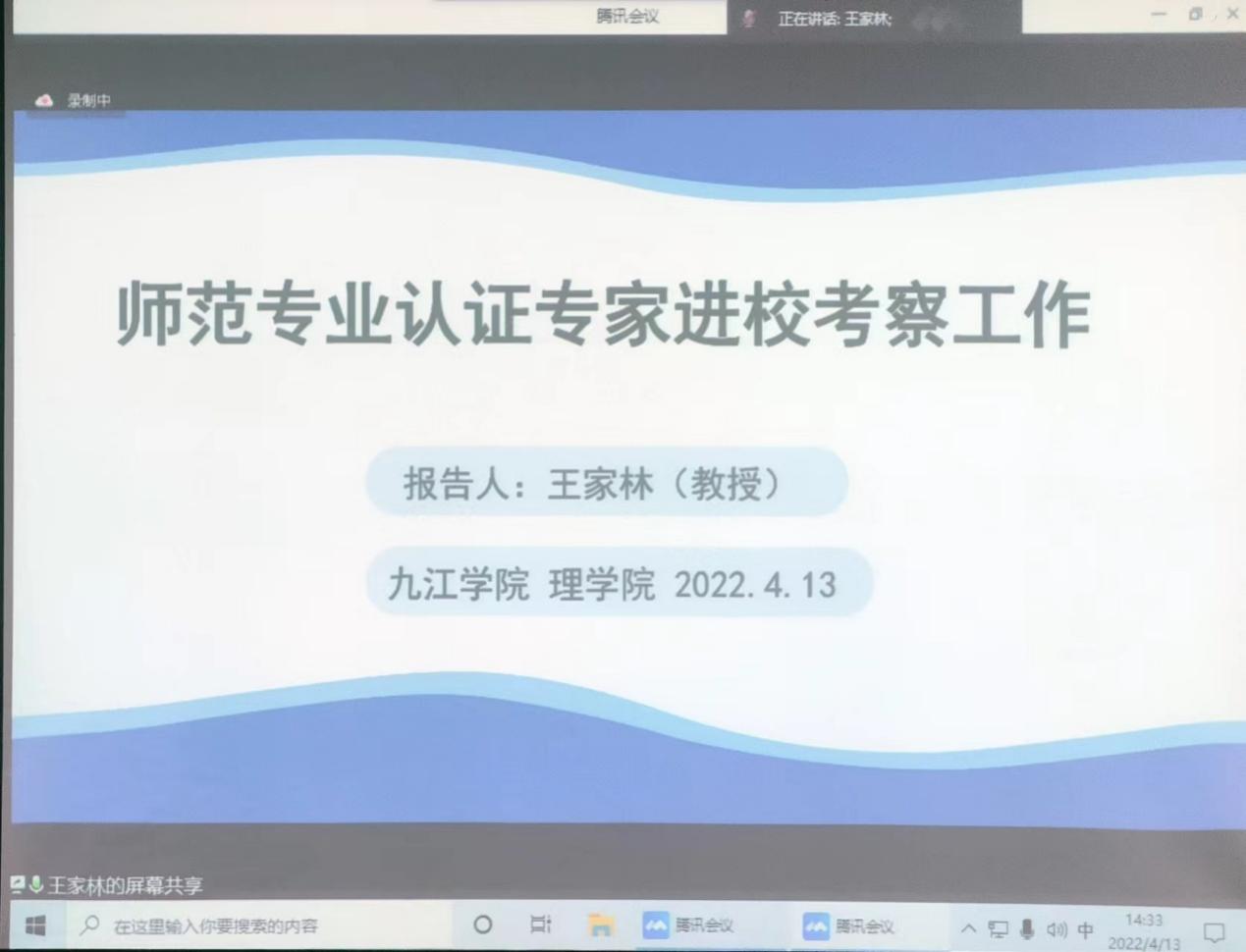 为了更好推进数学与应用数学专业师范认证工作。4月13日下午2点30分在文友楼312会议室,受理学院邀请,赣南师范大学数学与计算机学院副院长王家林教授为理学院全体教师作了题为《师范认证专业认证专家进校考察工作》的线上报告。会议由理学院副院长余荣忠主持,理学院院长魏健宁、理学院党委书记邹国辉、理学院全体教师参加会议、