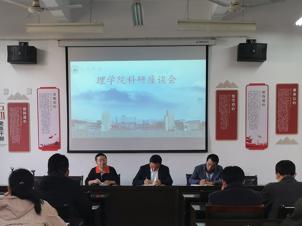 11月18日下午,理学院在文友楼312会议室召开科研工作座谈会。院长魏健宁、副院长査代奉、余荣忠及院科研骨干教师参加了座谈。