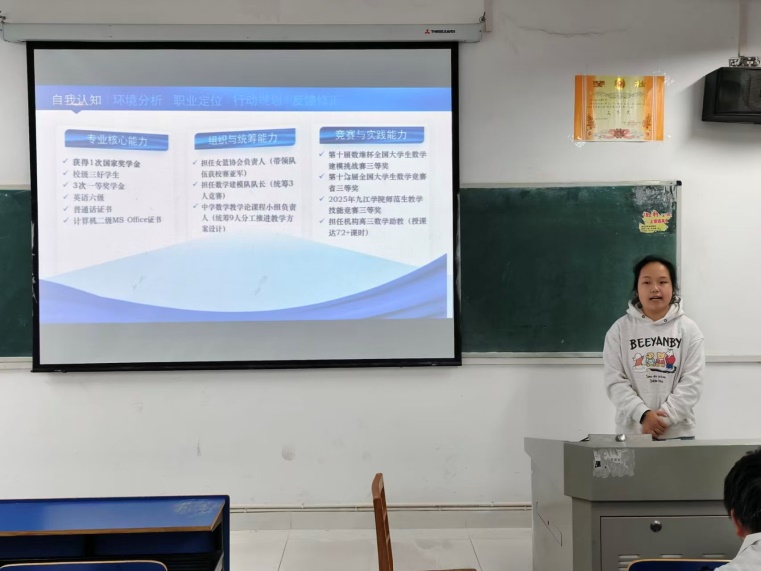 经过前期严格初筛,7位脱颖而出的参赛选手依次登台展示,围绕个人职业定位、行业分析、发展路径、实施计划、反思调整等核心内容,通过精心制作的PPT进行全方位讲解。