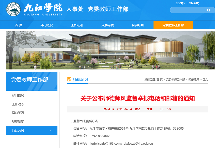 畅通师德监督渠道,建立监督举报平台。学校在校园网首页建立师德投诉举报平台,及时掌握师德信息动态,及时纠正不良倾向和问题。对师德问题做到有诉必查,有查必果,有果必复。