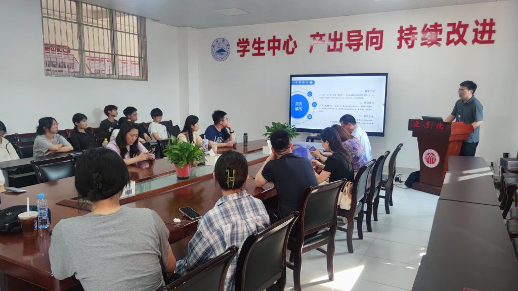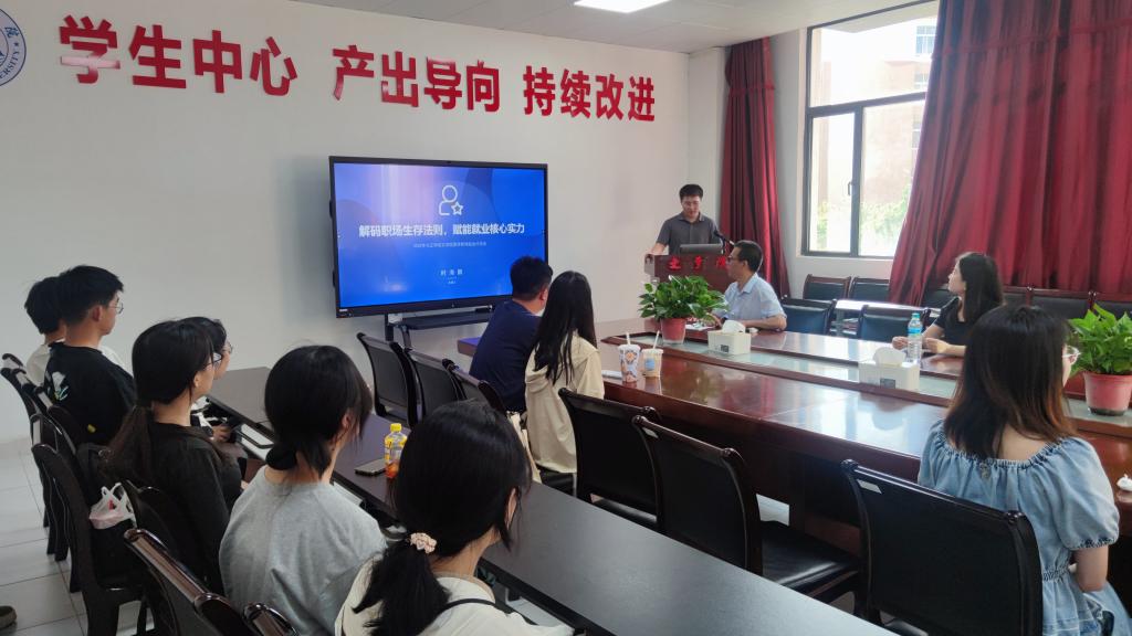 文学院以“解码职场生存法则,赋能就业核心实力”为主题,举办2025年夏季职场就业讨论会。活动特邀南昌光千刻科技服务有限公司创始人时海鹏担任主讲嘉宾,吸引了文学院师生20余人到场参与。