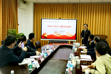 12月4日,蔡书记一行与广东药科大学基础医学院座谈交流。广东药科大学基础医学院党委书记谢沫珠,院长李雄,副院长尹辉、柯卓娃、汪胜和邓祖军参加了座谈会,双方围绕新时代高校基层党建双创工作进行了深入交流。