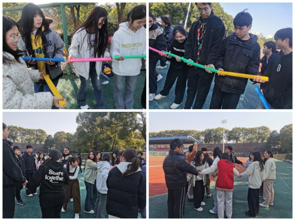 接着,指导老师组织了“千千结”、“不倒森林”、“珠行万里”等游戏活动。同学们在游戏的欢声笑语中逐渐放松了身心,完全沉浸在游戏带来的各种情境中,让自己完全拥有这段时间去真实地感受自己的内心。同时,同学们也把一个由相互陌生的人构成的陌生的空间因为各自的投入参与,转变成了相对熟悉有了一定默契的团队,大家都为自己的付出而创造的价值更加感到欣慰、开心和激动。
