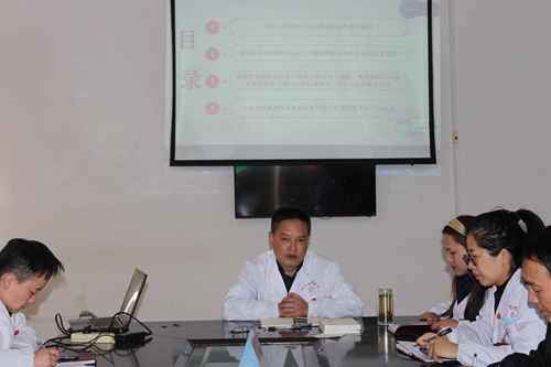 会上,支部委员陈晓琴首先给全体党员论述了党的十九届四中全会的主要内容。随后,钟志刚书记在发言中强调,学习宣传贯彻党的十九届四中全会精神,是当前和今后一个时期的重要政治任务,大家要把学习贯彻全会精神贯穿于校医院各项工作全过程、各方面,与深入开展“不忘初心、牢记使命”主题教育紧密结合起来,与中心工作结合起来,积极学懂弄通做实,做到入心入脑化行,始终秉持以师生健康为中心的理念,以提升医疗水平、提升服务质量、提升患者满意度为着力点,为全校师生的健康提供更高水平的医疗服务。
