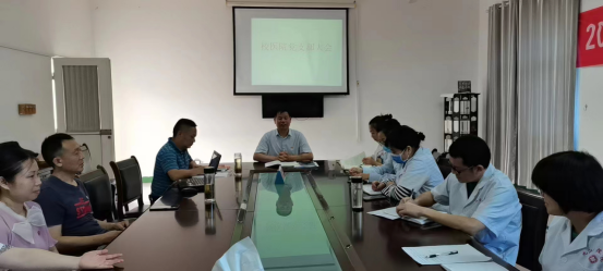 医院党支部在四楼会议室召开全体党员大会,会议由支部书记钟志刚主持。