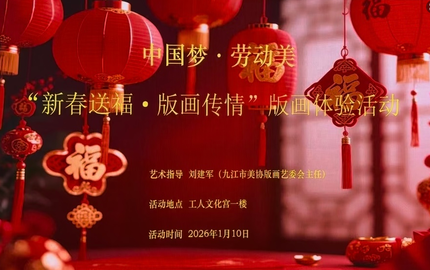 艺术学院绘画教研室受九江市濂溪区总工会邀请,在濂溪区工人文化宫成功举办了“新春送福·版画传情”艺术体验活动。本次活动旨在丰富职工群众精神文化生活,弘扬传统版画艺术,营造喜庆祥和的新春节日氛围。