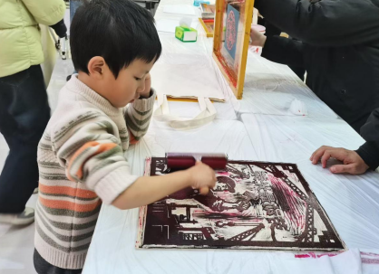 在体验区,艺术学院师生现场讲解版画制作技艺,开展实践教学,指导参与者亲手制作木刻版画和丝网版画。众多小朋友积极参与,亲手印制属于自己的版画作品,在动手实践中浸润劳动教育,感受传统工艺的独特魅力。现场氛围热烈,参与者纷纷表示,此次活动不仅让他们近距离接触到版画艺术,体验了动手创作的乐趣,也加深了对中华优秀传统文化的理解与喜爱,为即将到来的春节增添了浓厚的文化气息。