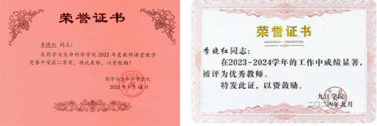 “师者,所以传道授业解惑也”。作为一名教师,季晓红始终将立德树人、教书育人作为自己的天职。任教5年来,她一直坚持在教学第一线,从事本科生的教育培养工作。工作中,季晓红始终坚持业务学习,不断更新教育理念、改进教学方法和手段,积累教学经验。注重自身教育教学能力和水平的提高,更注重言传身教、用人格魅力影响学生、感染学生。从教5年来,深受学生好评,教学质量评价年均为优。与此同时,积极参加各级各类教学培训、比赛,提高教学技能和教师修养,荣获药学与生命科学学院2022年度教师课堂教学竞赛二等奖,2023年度优秀教师称号。