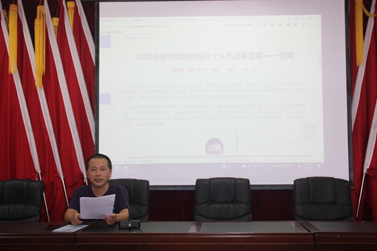 宛锦春传达了学校近期关于师德师风建设的通知精神,带领大家重点学习了2021年