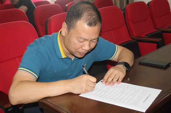 学院领导班子带领全员依次签署了《